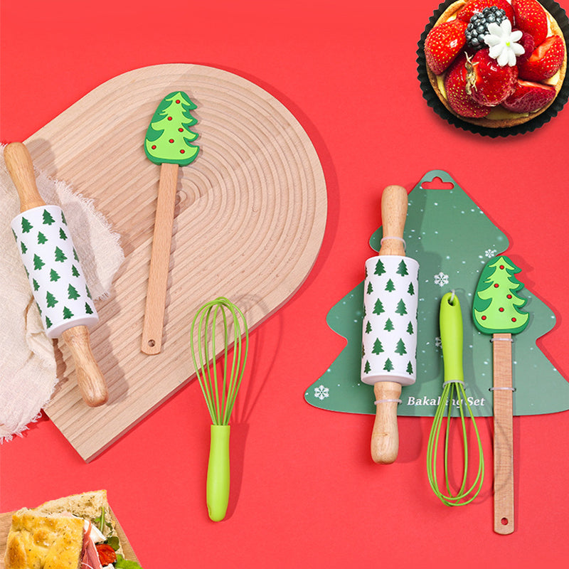 Christmas Holiday Series 3-Piece Set - Rolling Pin, Scraper, and Stainless Steel Mold