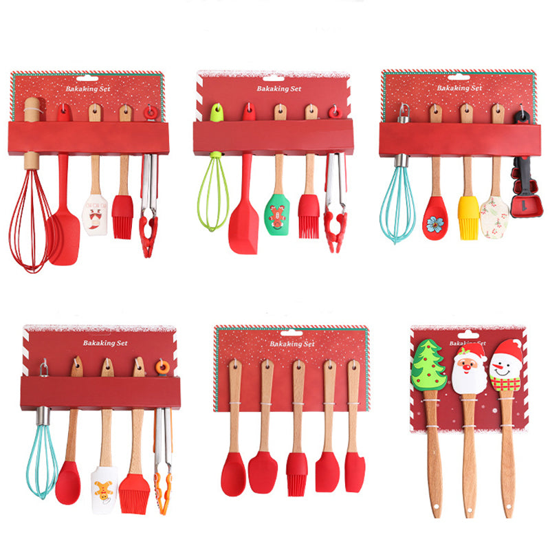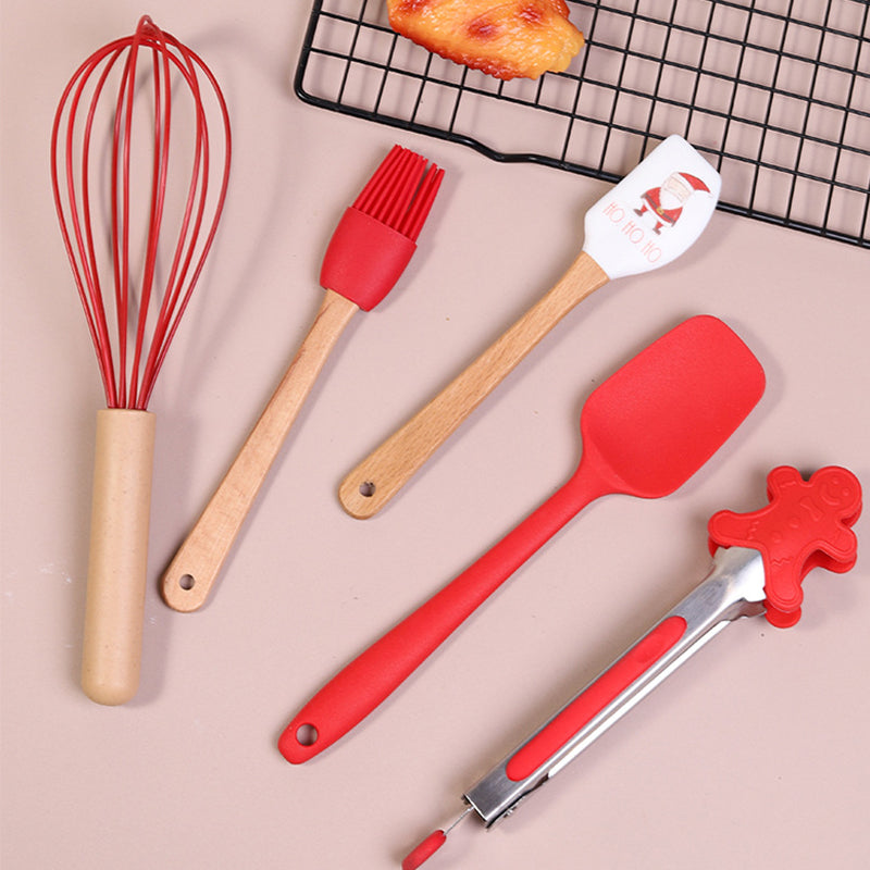 5 Piece Set Silicone Scraper Oil Brush Egg Beater Christmas Baking Ideal For Baking And Kitchen