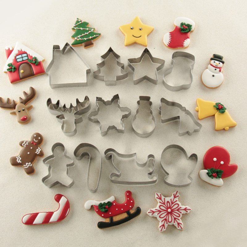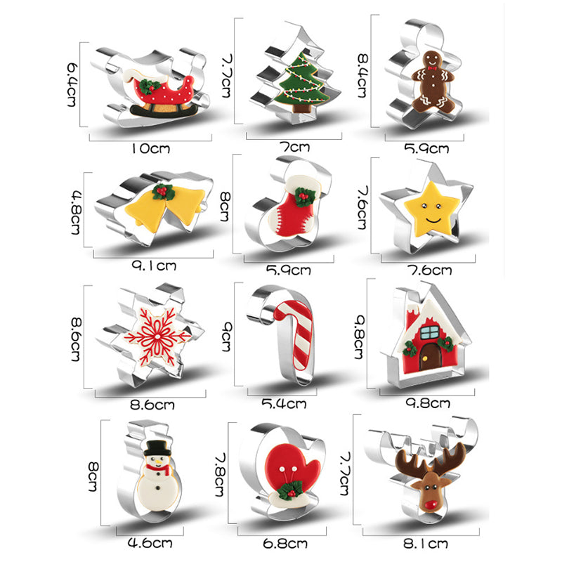 12 Pcs Christmas Cookie Cutters Winter Set Stainless Steel Cutters F or Christmas Biscuit, Fondant