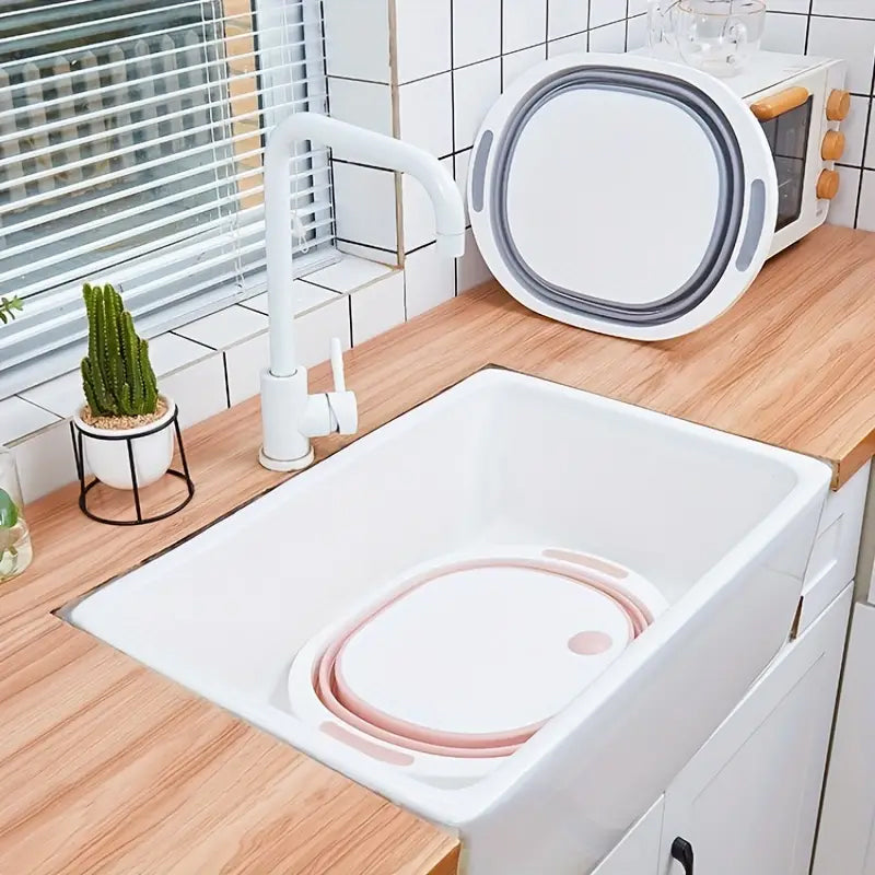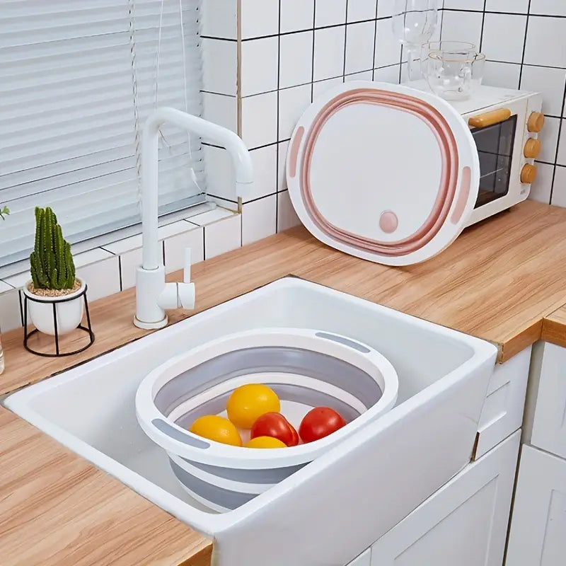 3 in 1 Folding Chopping Board Drainer Strainer - Strong & Practical - Space Saving for Kitchen, Travel, Camping, Picnic & More