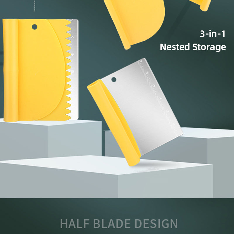 Tabletop Scraper Food Vegetable Cutter, Stainless Steel Pizza Dough Scraper - / Cake Scraper 3-Piece Set, Bread / Pastry / Pizza / Flour / Cheese Cutter