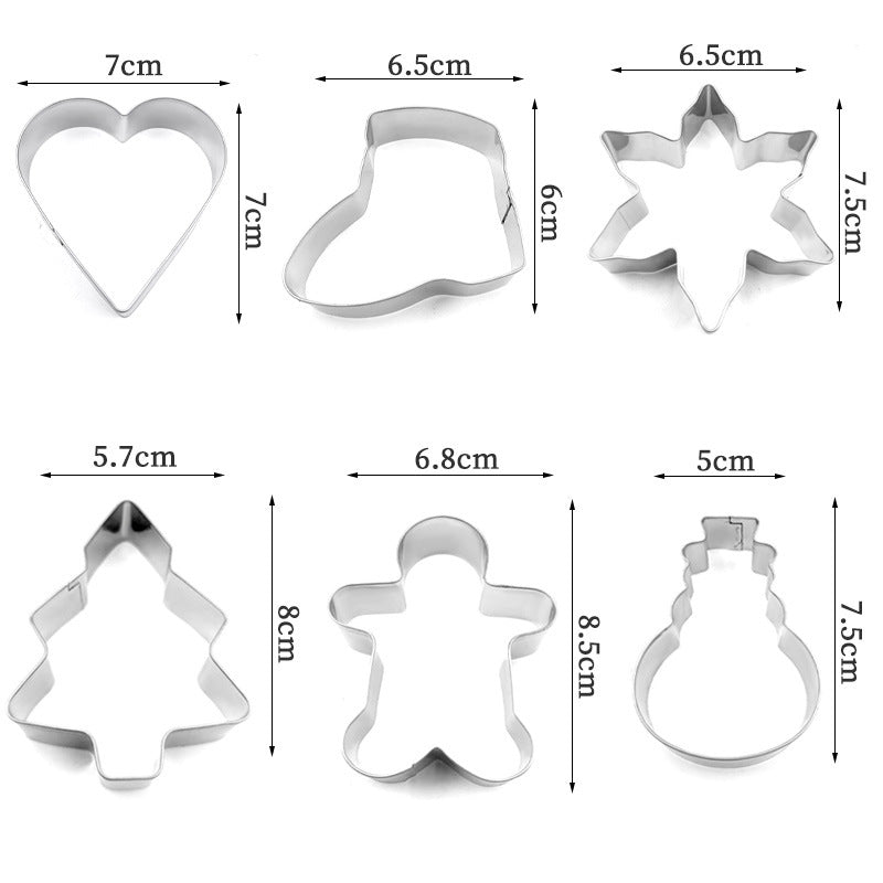 6 Pieces Christmas Cookie Molds Gingerbread Christmas Tree Snowman Bell Glove Cookie Molds DIY Stainless Steel Molds