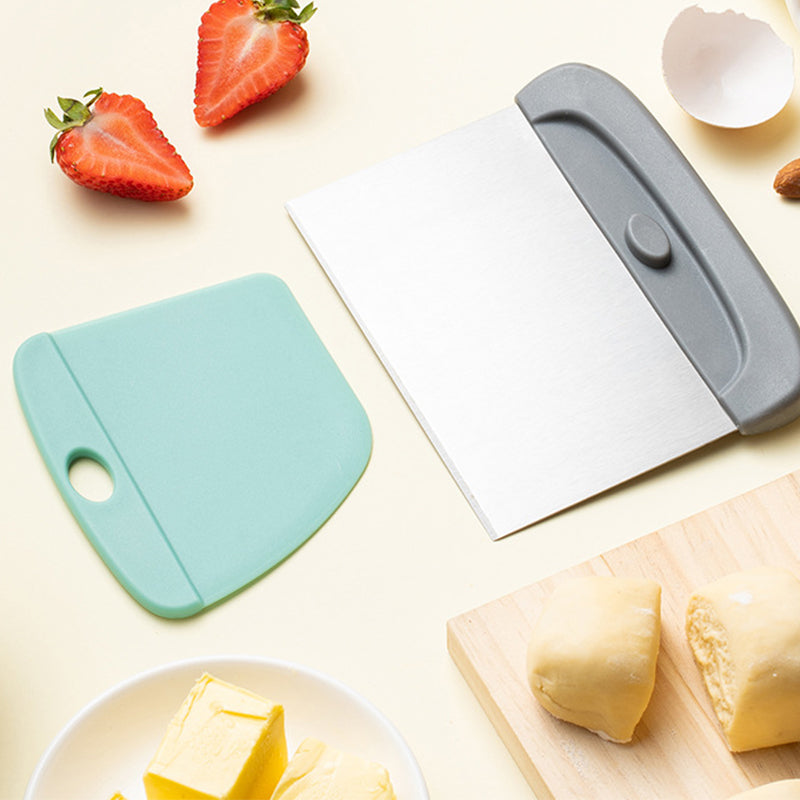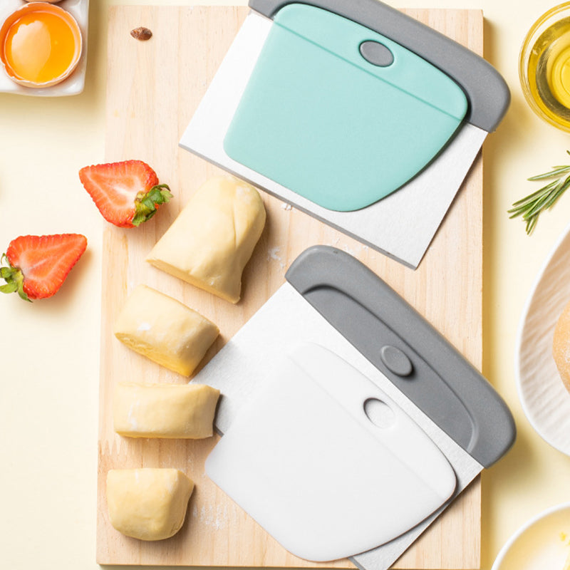 2 Packs Stainless Steel & Plastic Dough Cutter Set - Duty Baking Scraper Pastry Bread Pizza Sausage