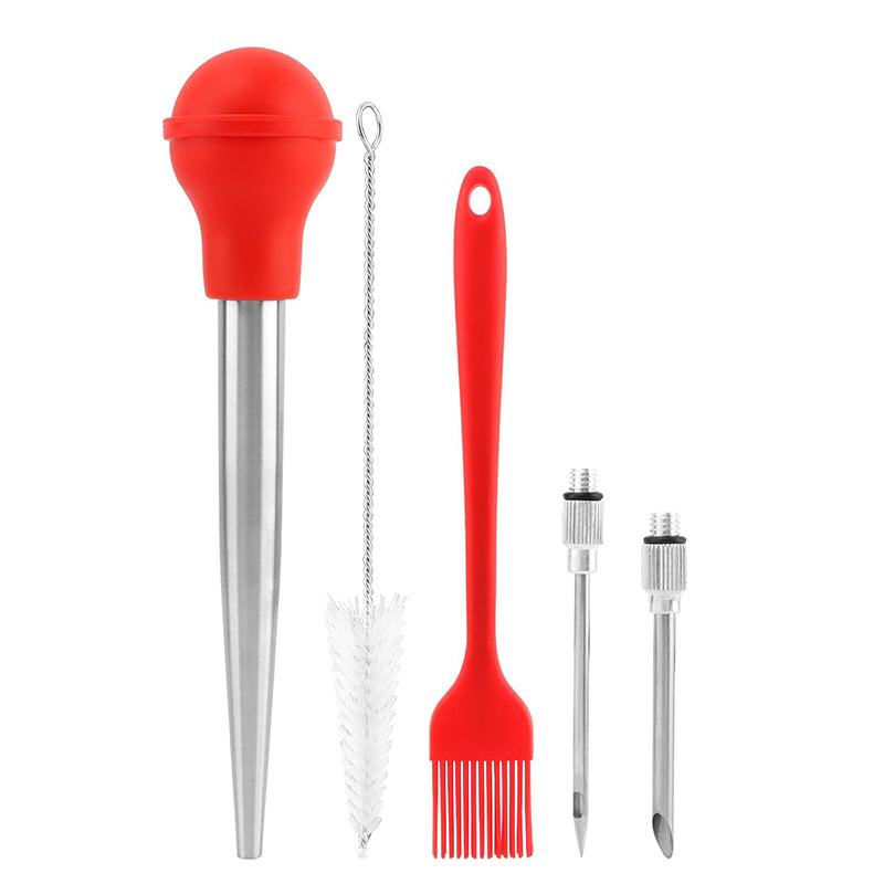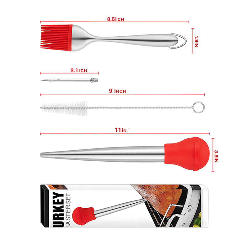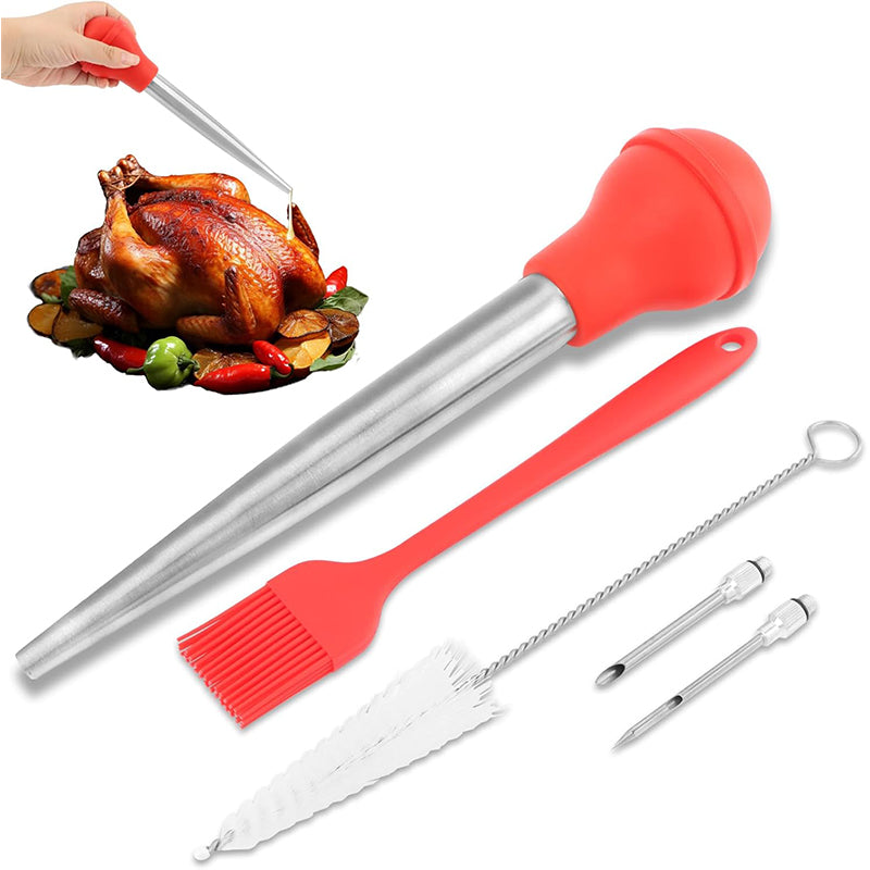 Stainless Steel Turkey Baster & Barbecue Basting Brush With 2 Flavor Injector Needles - Food Grade Syringe Baster For Cooking & Basting